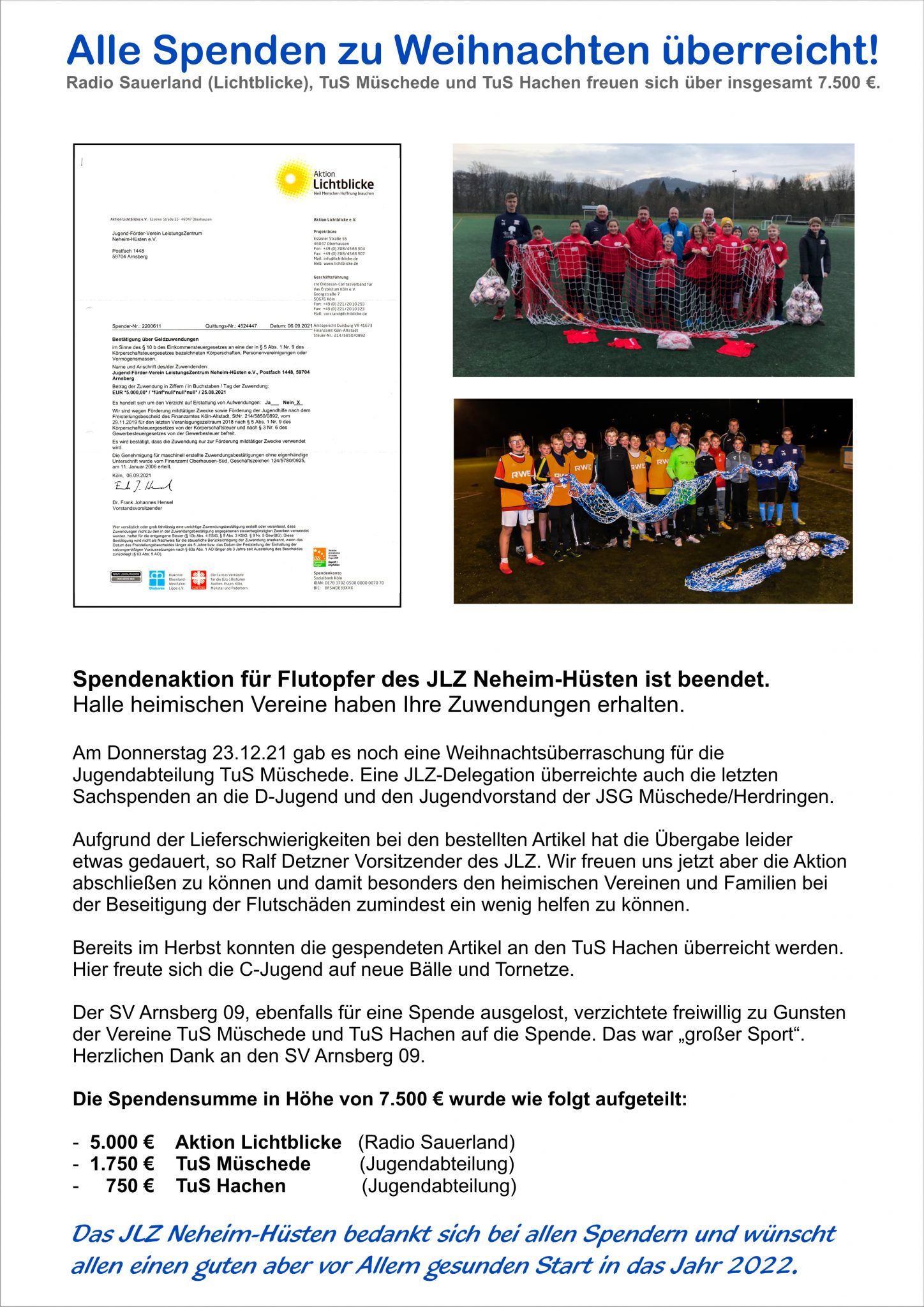 Spendenaktion für Flutopfer des JLZ Neheim-Hüsten ist beendet