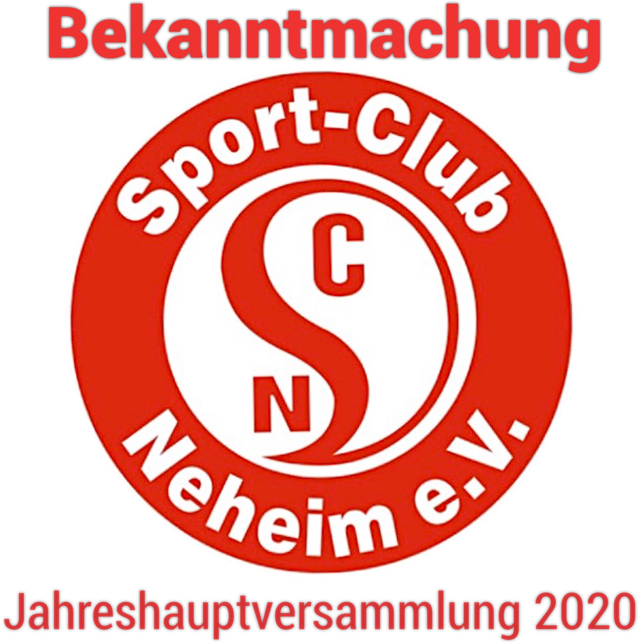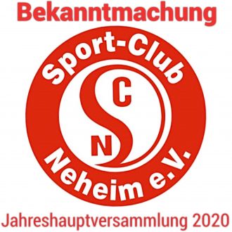 Die Einladung zur Jahreshauptversammlung mit Tagesordnung wird nach der Änderung unserer Satzung ausschließlich auf der Homepage des SC Neheim und durch Aushang am „Schwarzen Brett“ im Binnerfeldsportheim bekanntgegeben.