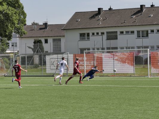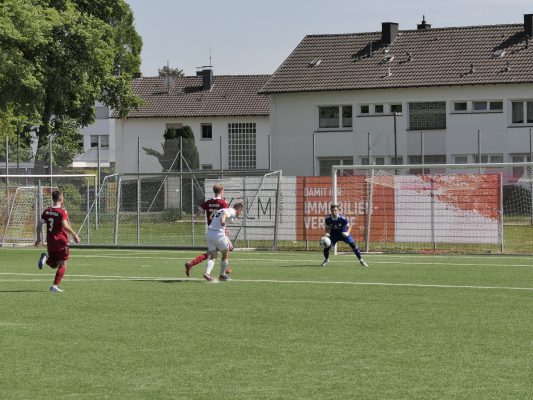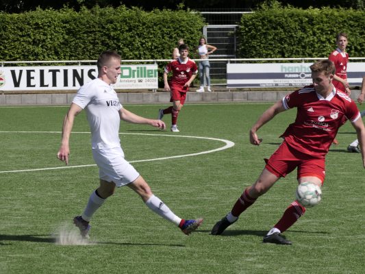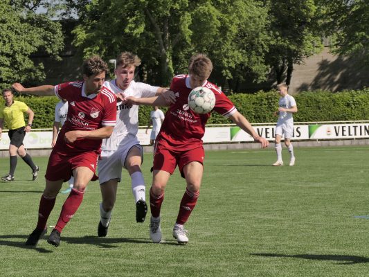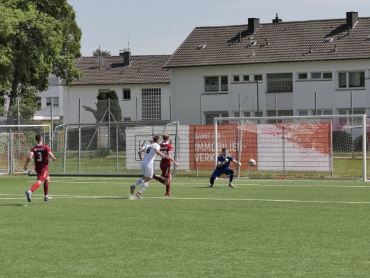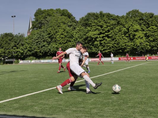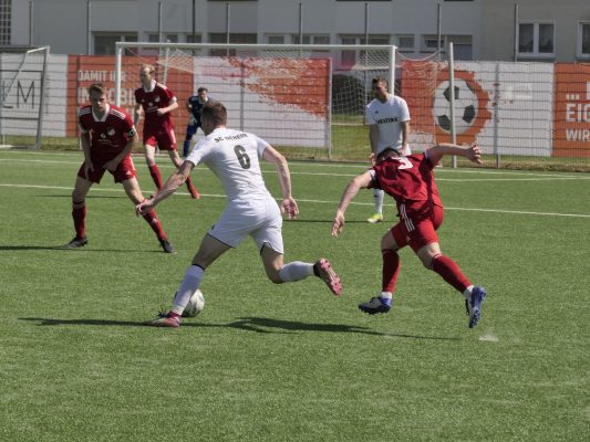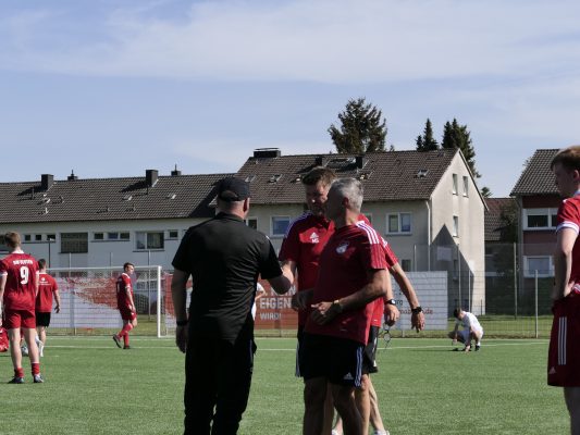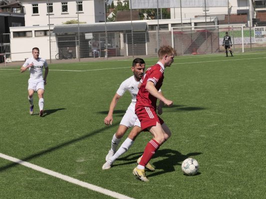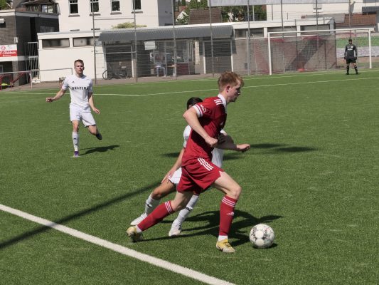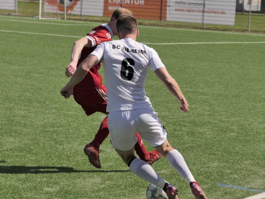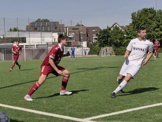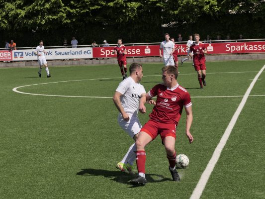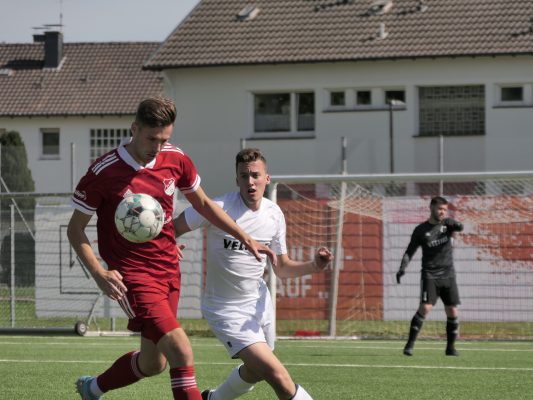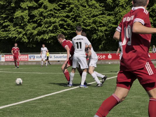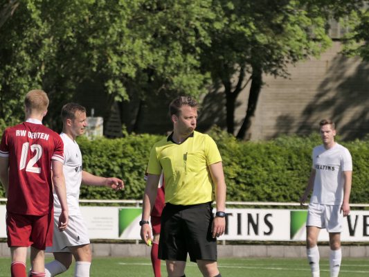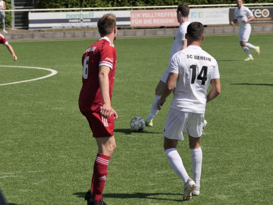 Der SC Neheim kam in der Anfangsphase der Partie nicht gut in den Tritt und kassierte folgerichtig das 0:1 in der 16. Minute. Ein Sonntagsschuss von Nils Falkenstein knallte aus vierzig Metern zunächst unter die Latte und flog von dort aus ins Netz. Auch danach kam der SC nicht richtig in die Zweikämpfe und spielte in Summe keine gute erste Halbzeit. Trotzdem erzielte Johannes Thiemann, der durch einen Freistoß von Lukas Wulf auf die Reise geschickt wurde, den Ausgleich (38.). Noch in der Nachspielzeit des ersten Durchgangs brachte Dennis Drepper den SV RW Deuten aber wieder in Führung (45.+3). Im Nachgang dieser Szene erhielt Burak Yavuz die gelbe Karte wegen Meckerns, was im Verlauf der Partie noch wichtig werden sollte.