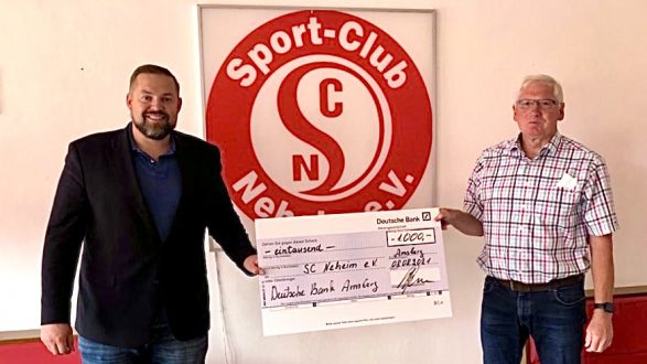 Der SC Neheim bedankt sich bei allen Spendern anläßlich des 50 jährigen Jubiläums. Wir haben uns sehr gefreut, neben Spenden von der Sparkasse und Volksbank auch viele private Geldbeträge erhalten zu haben. Diese Woche kam noch eine Spende der Deutschen Bank hinzu (siehe Bild).