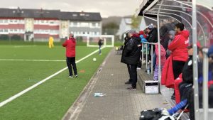 Nach der Halbzeit erhöhte der SC das Tempo, nutzte erneut gute Möglichkeiten nicht und kassierte in der 71. Minute das 0:2 (Chris Matuszak). Was danach folgte, war Spektakel pur. Patrick Nettesheim (74.) erzielte das 1:2 („Das freut mich besonders für Patrick“, so Bruchhage), Serhat Uzun war fünf Minuten später beim 2:2 erfolgreich. Der SC spielte auf Sieg, lief mit seiner überragenden Geschwindigkeit oft in Abseits – und musste in der 83. Minute einen weiteren, berechtigten Foulelfmeter hinnehmen, den Davide Basile zum 3:2 für Wanne verwandelte. Der SC bewies erneut Moral: Mahmut Yavuzaslan war in der 87. Minute zur Stelle und erzielte das umjubelte 3:3. „Selbst nach dem 3:3 wollten wir noch gewinnen“, betonte Bruchhage, der von einem insgesamt gerechten Remis sprach. „Beide wollten gewinnen, vor diesem Hintergrund sind beide Teams aber nicht zufrieden. Wir müssen am Thema Foulelfmeter arbeiten, das ist eine Baustelle, fünf Elfmeter bei elf Gegentoren sprechen eine deutliche Sprache. Wir haben einen Schritt gemacht, wollten aber drei Schritte, aber vielleicht ist ein Schritt ab und zu besser als drei.“ Bruchhage lobte Rafael Kickartz, der zehn Minuten zum Einsatz kam. „Er hat seine Sache sehr gut gemacht.“